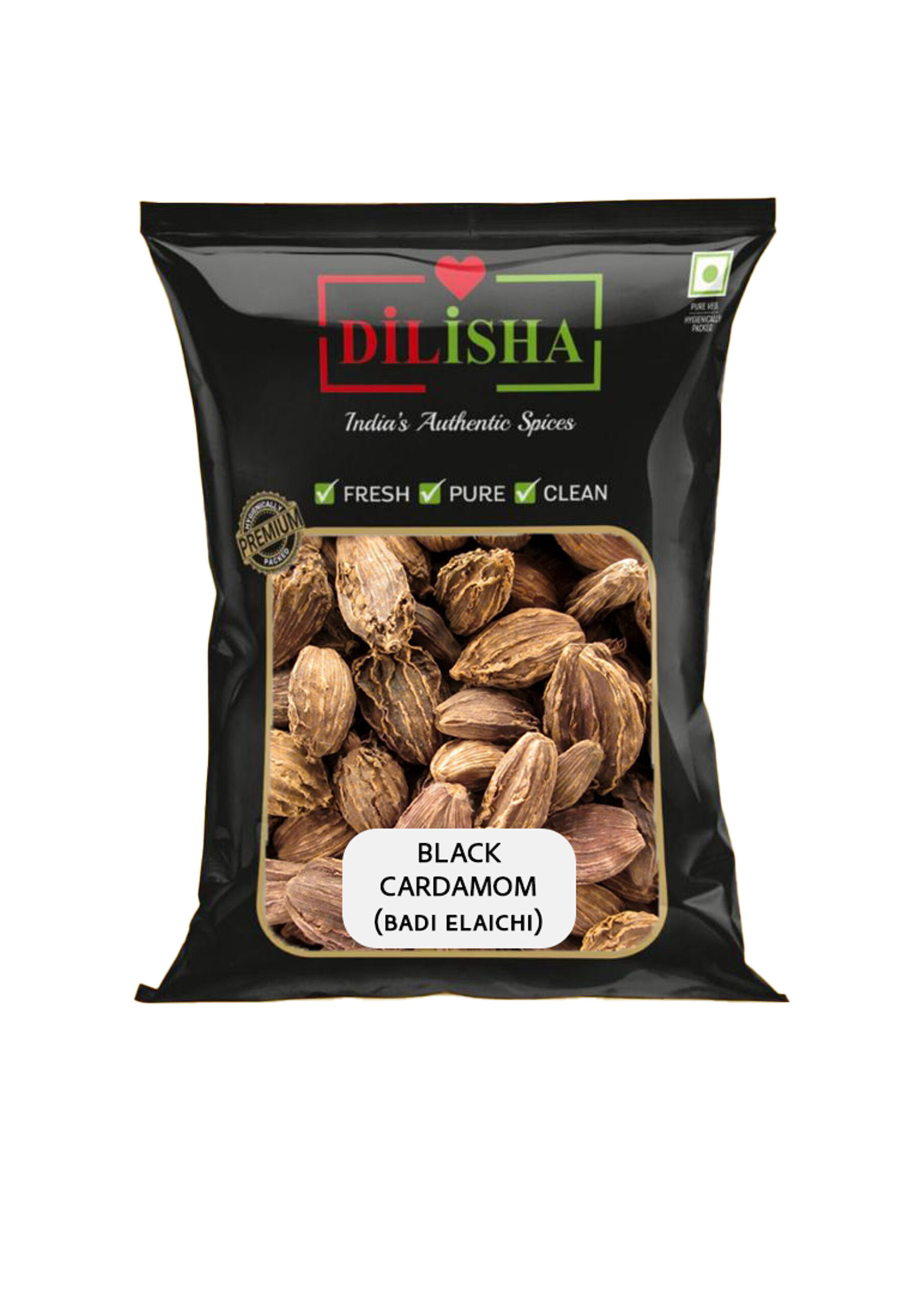 Buy Dilisha Black Cardamom (Badi Eaichi) and enhance the flavor of your dishes with our handpicked, sun-dried and fungus-free Black cardamoms for their maximum freshness and aroma.